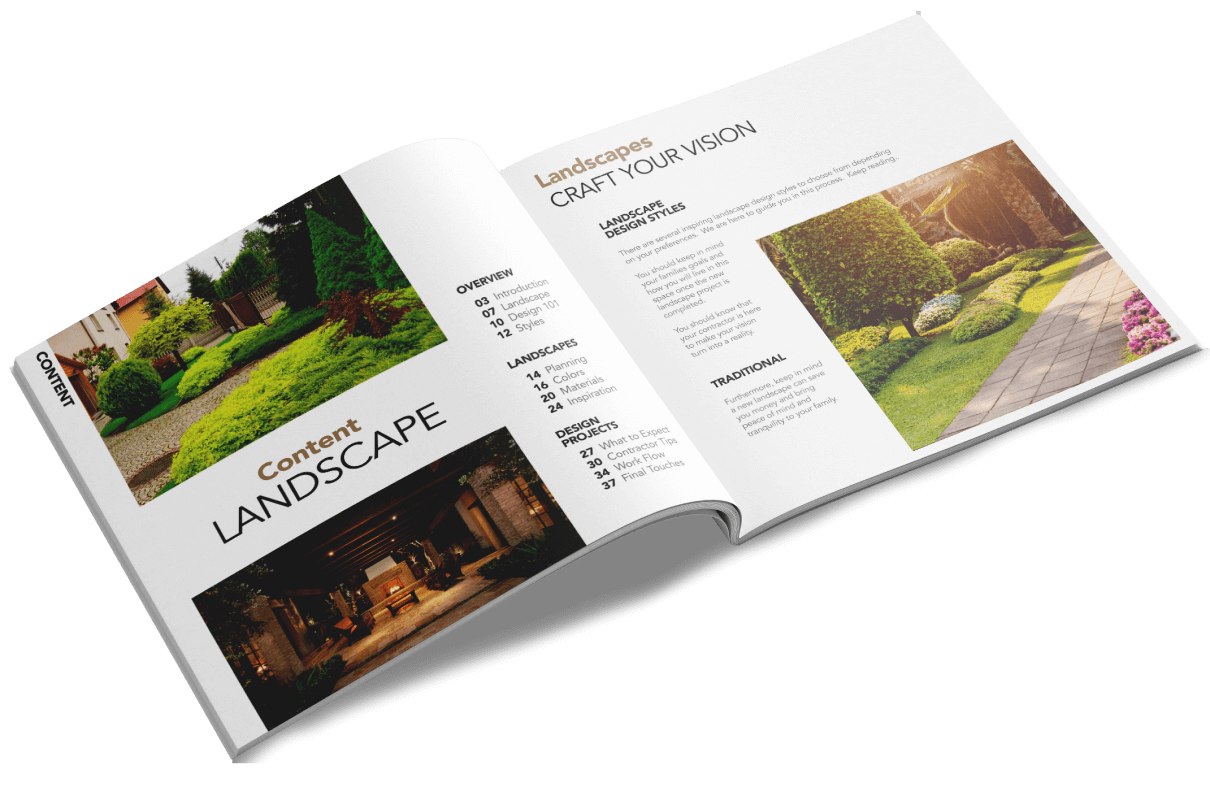 Our guide is packed with inspirational landscape projects, before-and-after stories, and an overview on the most popular layouts & designs of {YEAR}.